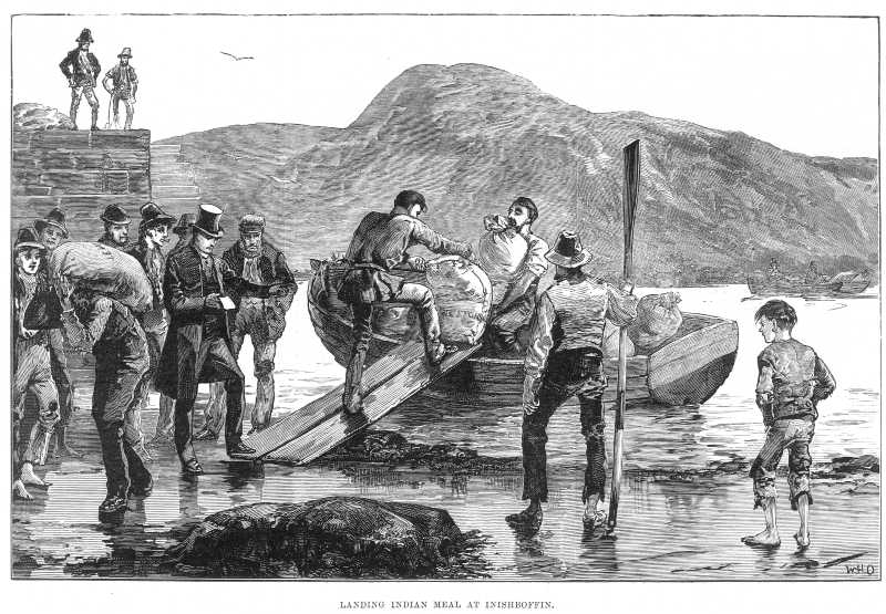 Sketch showing the landing of Indian meal at Inishbofin from Illustrated London News, April 10 1886