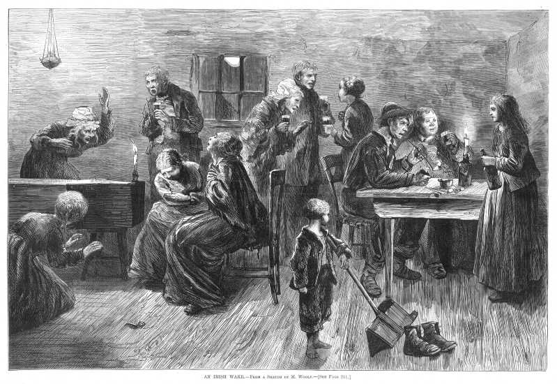 Sketch of scene at an Irish wake from Harper's Weekly, March 15 1873.
