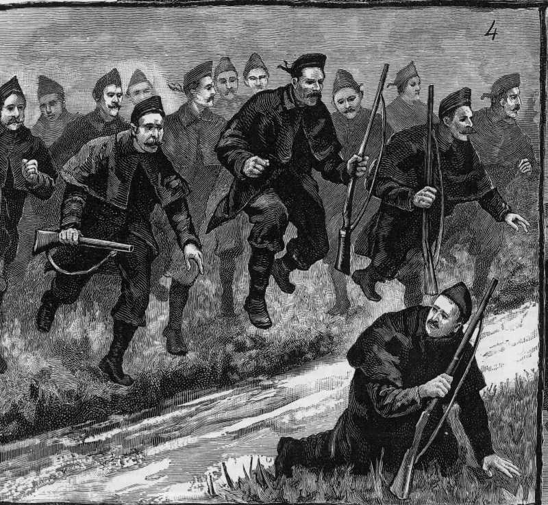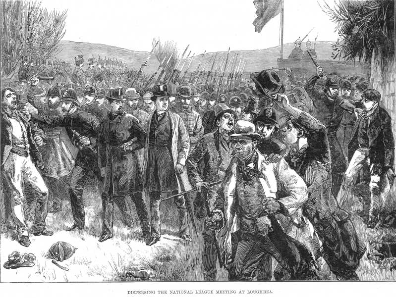 Sketch of dispersal of Land League meeting at Loughrea. From Illustrated London News Apr 21 1888
