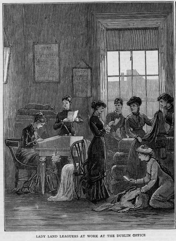 Sketch of members of the Ladies' Land League at work in the Dublin Office. From The Graphic, November 12th, 1881.