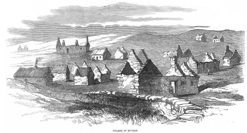 Sketch of the deserted village of Moveen, Co. Clare - result of evictions. From Illustrated London News, Dec 22 1849