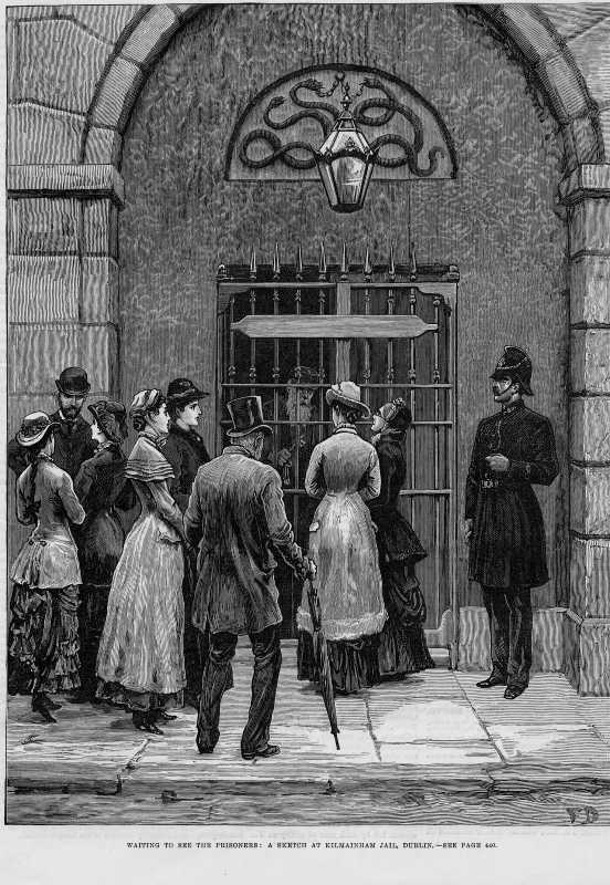Sketch of group waiting to see Land League prisoners in Kilmainham Jail. From Illustrated London News, November 5th, 1881.