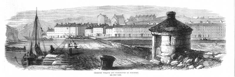 Sketch of Westport Quay captioned "Deserted wharfs and warehouses of Westport", from Illustrated London News, May 21 1870